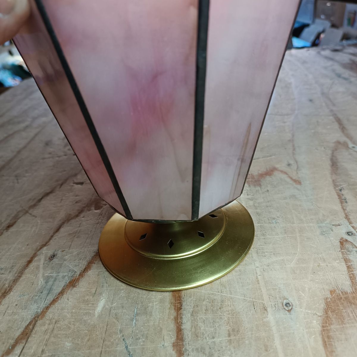 Kapje voor op een tiffany lamp met ruitpatroon, doorsnede 11,6 cm. Kapje met vertind worden om te kunnen bevestigen aan het glas.